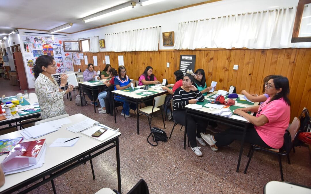 La propuesta fue organizada por la coordinadora municipal de Primera Infancia, Rosana Ledesma, junto a la responsable de la biblioteca, María Jesús Ochoa. La capacitación tiene como objetivo brindar herramientas sobre distintos tipos de encuadernación, orientadas al cuidado, protección y reparación de los libros que se utilizan cotidianamente en las salas de los jardines.